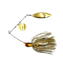 O king Spinner é fabricado com metais reforçados, cerdas de silicone e colheres para vibração. É uma isca totalmente anti enrosco devido seu formato em V e anzol voltado para cima, podendo trabalhar por entre a vegetação aquática, troncos e pedras. Outro diferencial é o intenso brilho e vibração que suas colheres produzem ao ser trabalhado, atraindo muito a atenção dos peixes predadores. O King Spinner foi desenvolvido em parceria com o renomado pescador Eduardo Monteiro para peixes como: Tucunarés, Traírões, Cachorras, Bicudas, Aruanãs, Dourados e etc. Marca: Yara Modelo: King Spinner Anzol: 6/0 Peso: 26 gramas Ação: Fundo