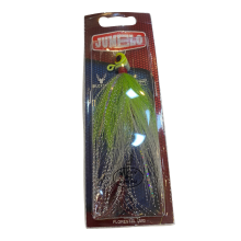 O Jumelo Jigs Predador Amazônico com auxiliar e lâmina 18g é fabricado com pelo natural (Bucktail), garantindo movimentos fluidos que despertam o interesse dos predadores. A combinação da lâmina giratória com o anzol auxiliar potencializa a vibração e o brilho, atraindo espécies como tucunaré, dourado, pirarara e outros peixes de ataque rápido.